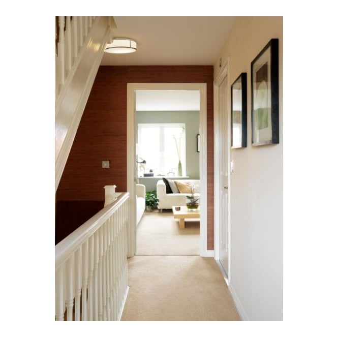 Mashiko Round ceiling light. Polished chrome finish, white opal glass diffuser.