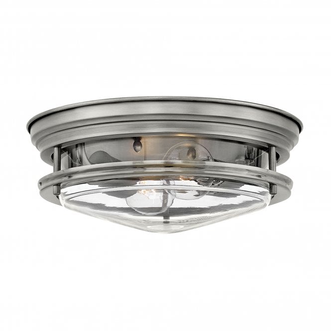 Hadrian 2 Light Flush Ceiling Fitting Clear Glass Antique Nickel