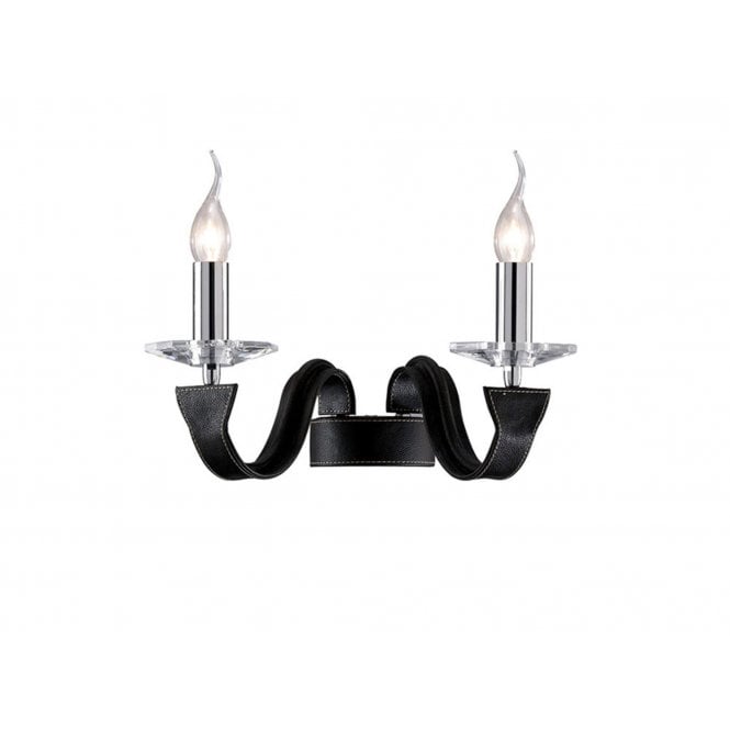 Diyas IL31032 Nardini Wall Lamp 2 Light Polished Chrome/Black Faux Leather/Crystal