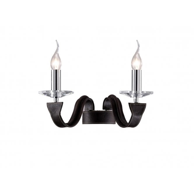 Diyas IL31042 Nardini Wall Lamp 2 Light Polished Chrome/Dark Brown Faux Leather/Crystal