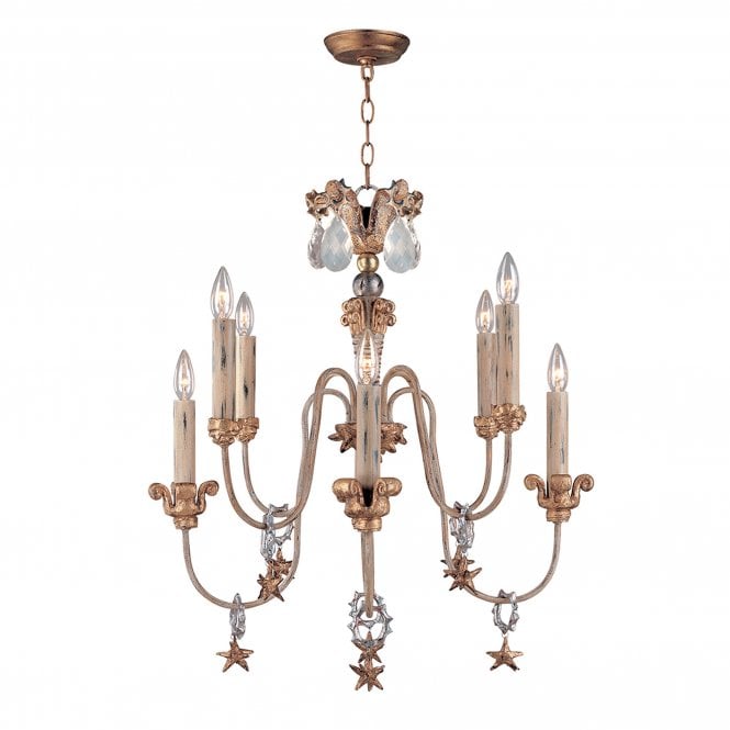 Kristal Luxe 6 Light Chandelier Silver Leaf & Taupe