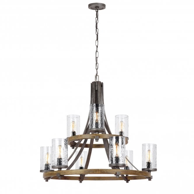 Angelo 9 Light Chandelier In Distressed Weathered Oak / Slate Grey Metal