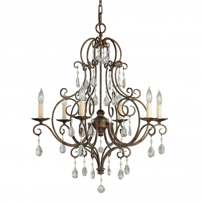Chateau 6 Light Chandelier Glass Crystals Mocha Bronze