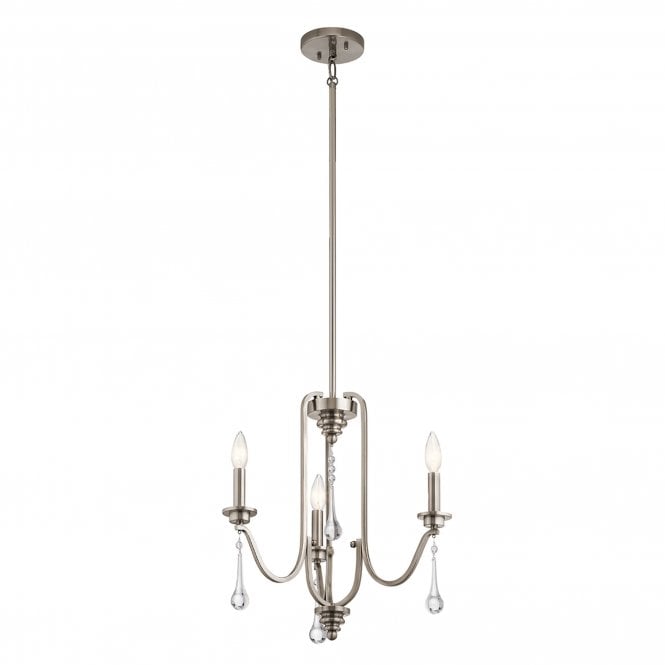 Karlee 3 Light Chandelier Classic Pewter with antique-style droplets