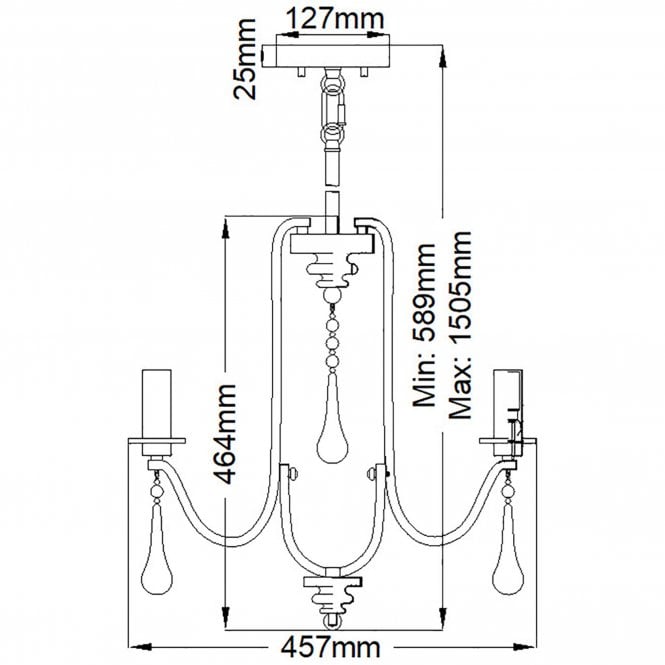 | short description | Quintiesse - QN-KARLEE3 - Karlee 3 Light Chandelier Classic Pewter with antique-style droplets - 3lt Chandelier |