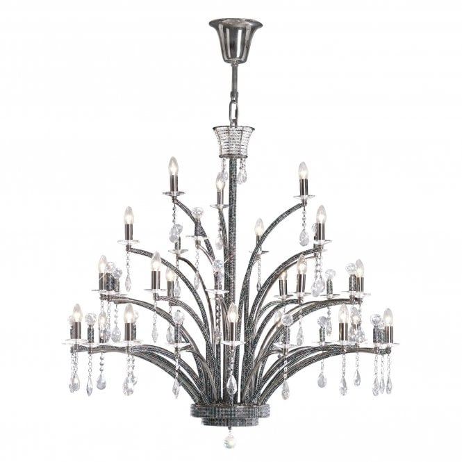 Diyas IL30490 Orlando Pendant 21 Light Black Chrome/Crystal (ITEM REQUIRES ASSEMBLY)