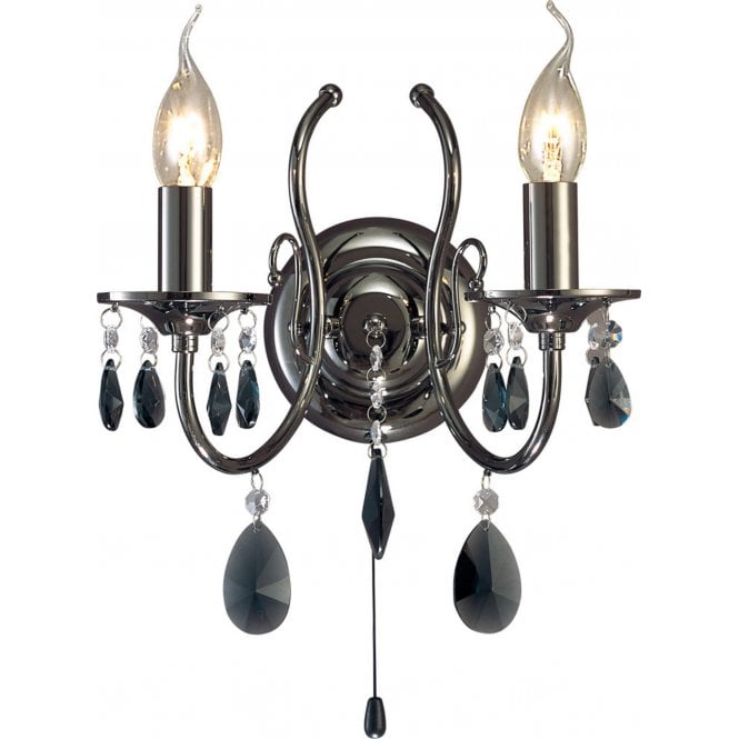 Diyas IL30472 Elena Wall Lamp Switched 2 Light Black Chrome/Crystal