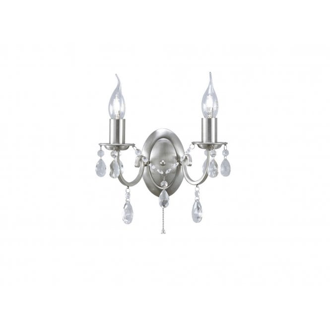 Diyas IL30972 Kyra Wall Lamp Switched 2 Light Satin Nickel/Crystal