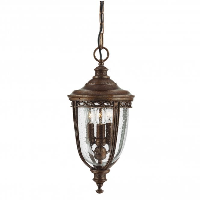English Bridle 3 Light Medium Chain Lantern with British Bronze finish