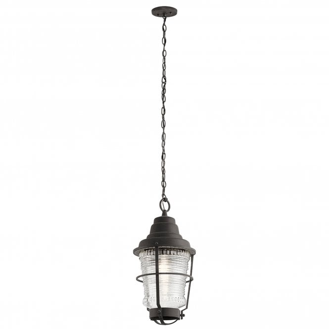 Chance Harbor 1 Light Chain Lantern Ribbed Glass IP44 Weathered Zinc