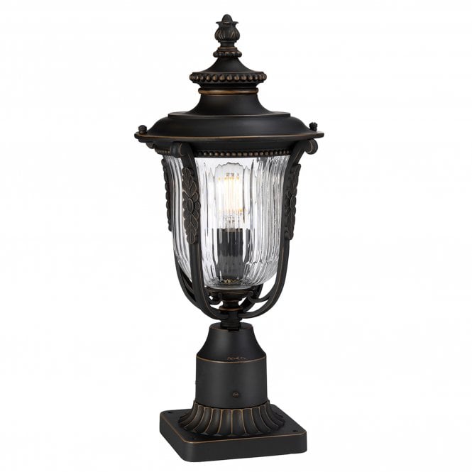 Bedford 1 Light Medium Pedestal Lantern In Mystic Black Finish
