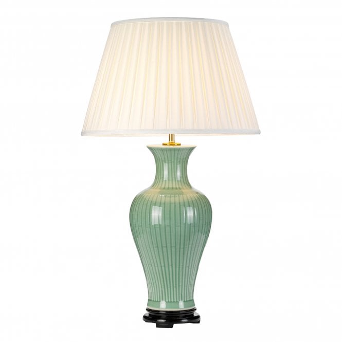Reno Table Lamp Green / Polished Nickel Cream Faux Silk Shade