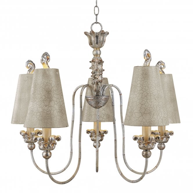 Kristal Luxe 6 Light Chandelier Silver Leaf & Taupe