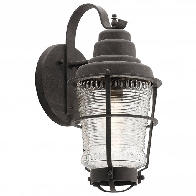 Chance Harbor 1 Light Small Wall Lantern Ribbed Glass IP44 Weathered Zinc