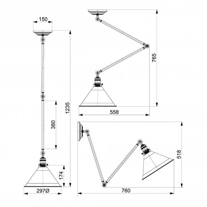 | supplied with chain or poles | Each arm is 380mm in length. |